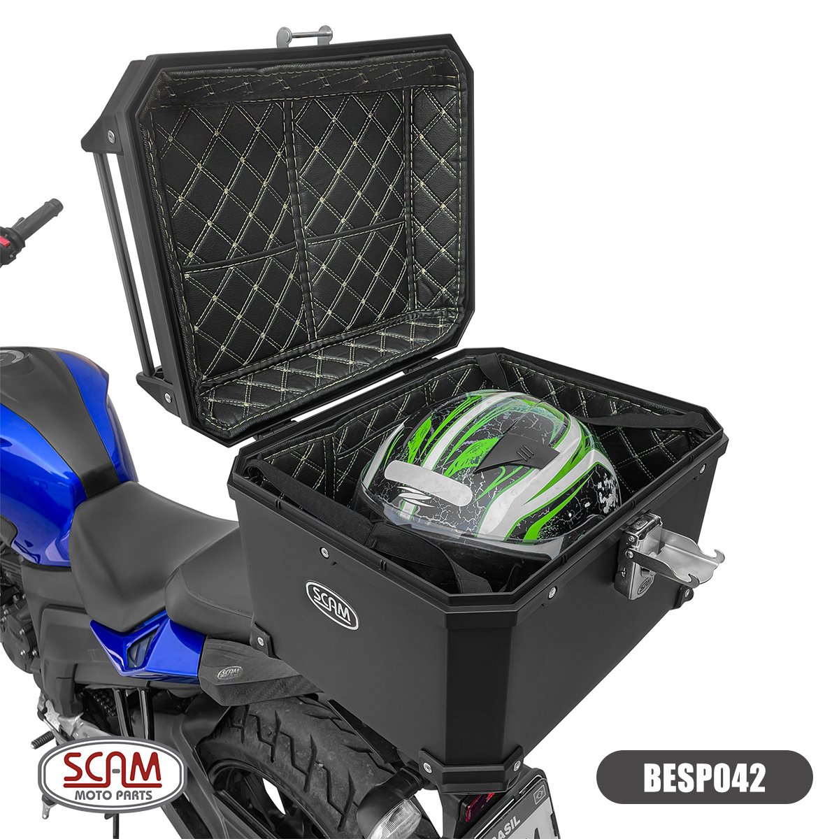 Desenvolvidos para aliar design e praticidade, os Baús Economy SCAM acomodam com segurança as bagagens nos mais variados modelos de motocicleta. Com exclusivo sistema de engate rosqueável, garantem firmeza na fixação e agilidade na remoção, para que o motociclista se concentre apenas em aproveitar a viagem.