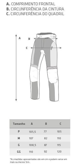 Proteções internas removíveis com ajuste de altura em dois níveis e C.E. nos joelhos;