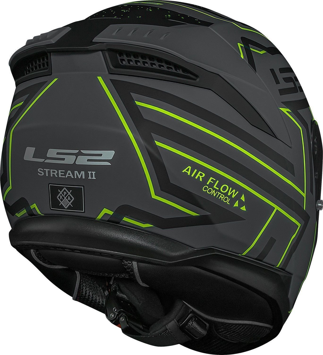 LS2 STREAM II, capacete fechado com estilo elegante projetado para pilotagem em estrada e cidade que conta com a nova homologação europeia ECE 22.06. Construído com o polímero KPA e EPS de múltipla densidade, proporciona uma excelente segurança tanto na cidade quanto na estrada. Conta com uma resistente viseira dupla com amplo campo de visão preparada para Pinlock. Apresenta um avançado sistema de ventilação, com ótimo fluxo de ar proporcionando um excelente conforto térmico. O forro, cortado a laser é antibacteriano e removível para melhor higienização. Conta com fecho micrométrico para um ajuste perfeito.