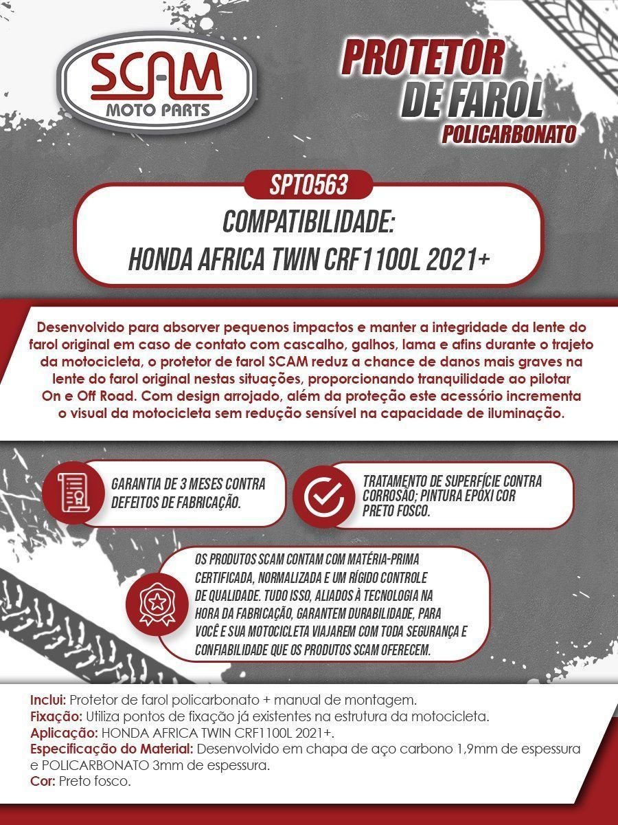 Desenvolvido para absorver pequenos impactos e manter a integridade da lente do farol original em caso de contato com cascalho, galhos, lama e afins durante o trajeto da motocicleta, o protetor de farol Scam reduz a chance de danos mais graves na lente do farol original nestas situações e como sua nova lente em POLICARBONATO ultrarresistente é a prova de trincas e quebras, proporciona tranquilidade ao pilotar On e Off Road. Com design arrojado, além da proteção este acessório incrementa o visual da motocicleta sem redução sensível na capacidade de iluminação. Os produtos Scam contam sempre com matéria-prima certificada, normalizada e um rígido controle de qualidade. Esses fatores, aliados à tecnologia empregada na fabricação, garantem durabilidade para você e sua motocicleta viajarem com toda segurança e confiabilidade que os produtos Scam oferecem.